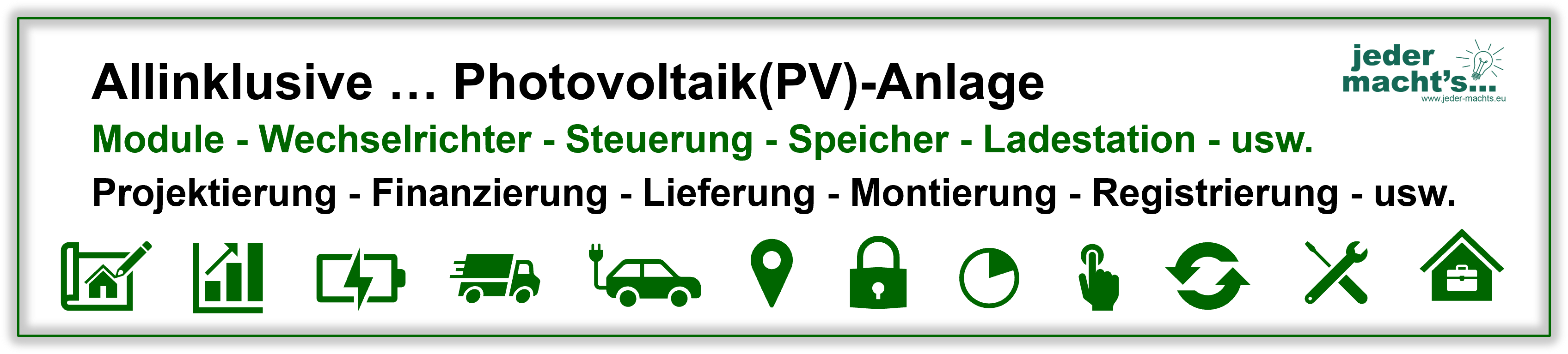 Das Spektrum geht von kaufen, mieten, in der Kombi kaufen/mieten, Firmen interne Ratenzahlungen, Finanzierung, Dachmiete oder du nutzt einfach nur den Strom, von deinem Dach der dort produziert wird und das zu super Konditionen.